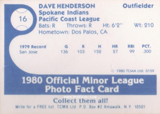 1980 TCMA SPOKANE INDIANS 16 -- --