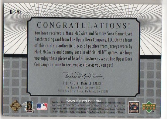 2002 UPPER DECK ULTIMATE COLLECTION ULTIMATE DOUBLE PATCHES DP-MS /100 GU PATCH